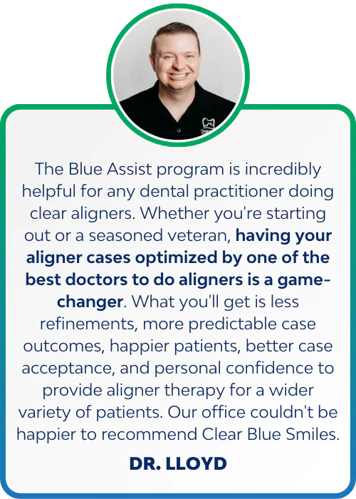 We help dental practices identify the incredibly broad range of clear aligner opportunities that already exist in your practice. Learn how to dramatically increase treatment case acceptance, streamline clinical workflows, and boost doctor productivity to the highest level. From orthodontist-guided treatment planning support to administrative support or individual coaching and mentorship, we have the tools to help get you and your team to the next level.